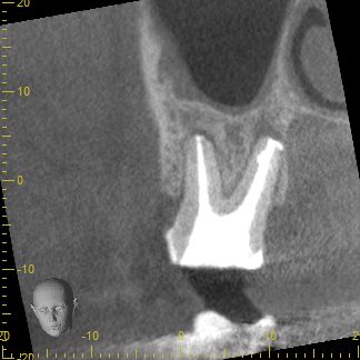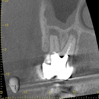 歯根周囲の骨の吸収が大きく、保存が可能かどうか判断が難しいと思われたCT画像