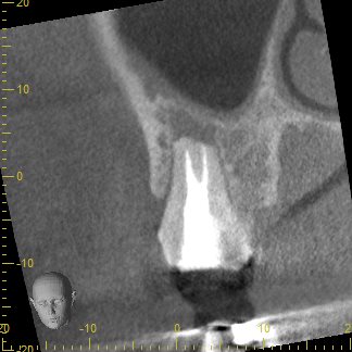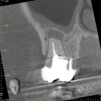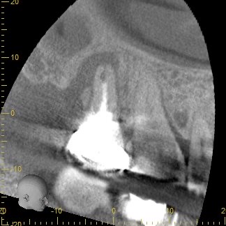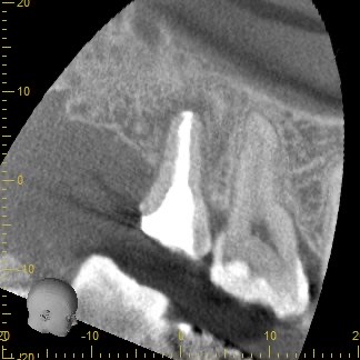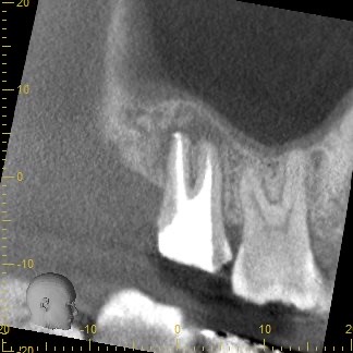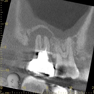 歯根周囲の骨の吸収が大きく、保存が可能かどうか判断が難しいと思われたCT画像