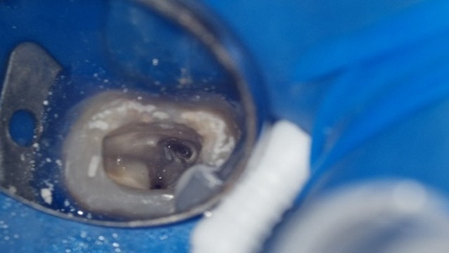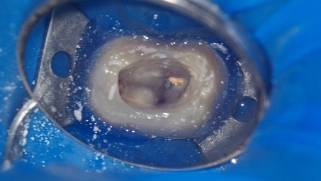 病巣が大きかったとしても、歯根が破折(折れる)をしていなければ根管治療により治る可能性があると考えています。まずは、すでに装着されている被せ物やむし歯があればすべて取り除き、その上でマイクロスコープを用いて確認していきます。