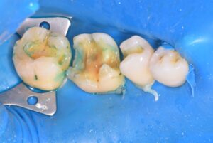 銀歯の中がむし歯となってしまったため、まずは銀歯とむし歯を取り除きます。