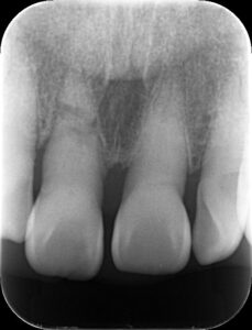 右上の前歯を転倒により強打し、歯根が破折してしましました。