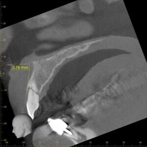 この画像は歯を3次元的に見ることができるCT画像で、明らかな破折している線が確認できました。